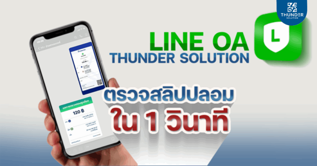 LINE OA บริการนี้เหมาะกับร้านค้าที่มี LINE Official Account เพียงเพิ่มบอทของ Thunder Solution เข้าไป เมื่อลูกค้าส่งสลิปเข้ามาก็สามารถตรวจสอบได้ทันทีโดยไม่ต้องเซฟรูปไปเช็กทีหลัง